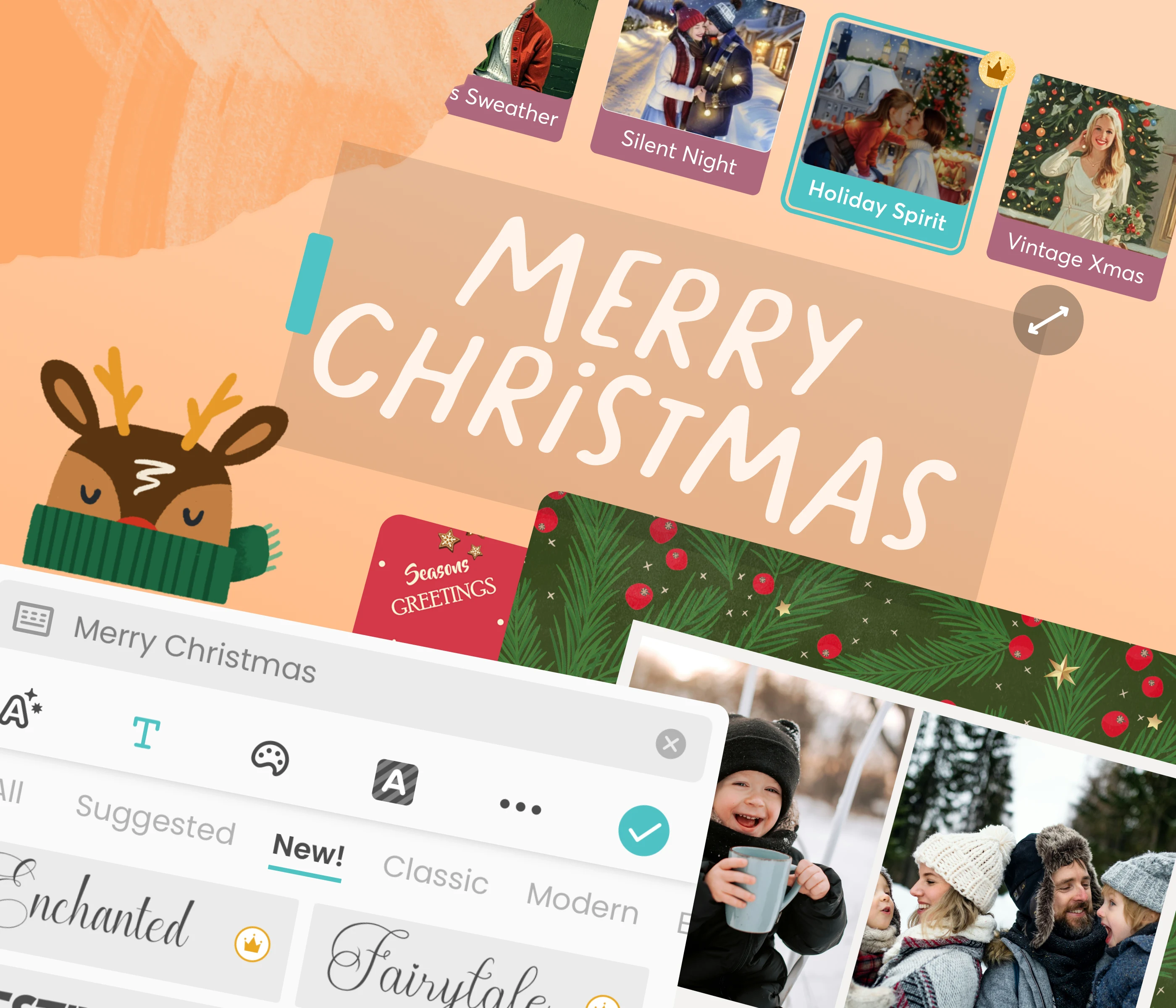 Drop in photos or short video clips. Use snow overlays, stickers, or cozy fonts. Each tap adds a little magic.