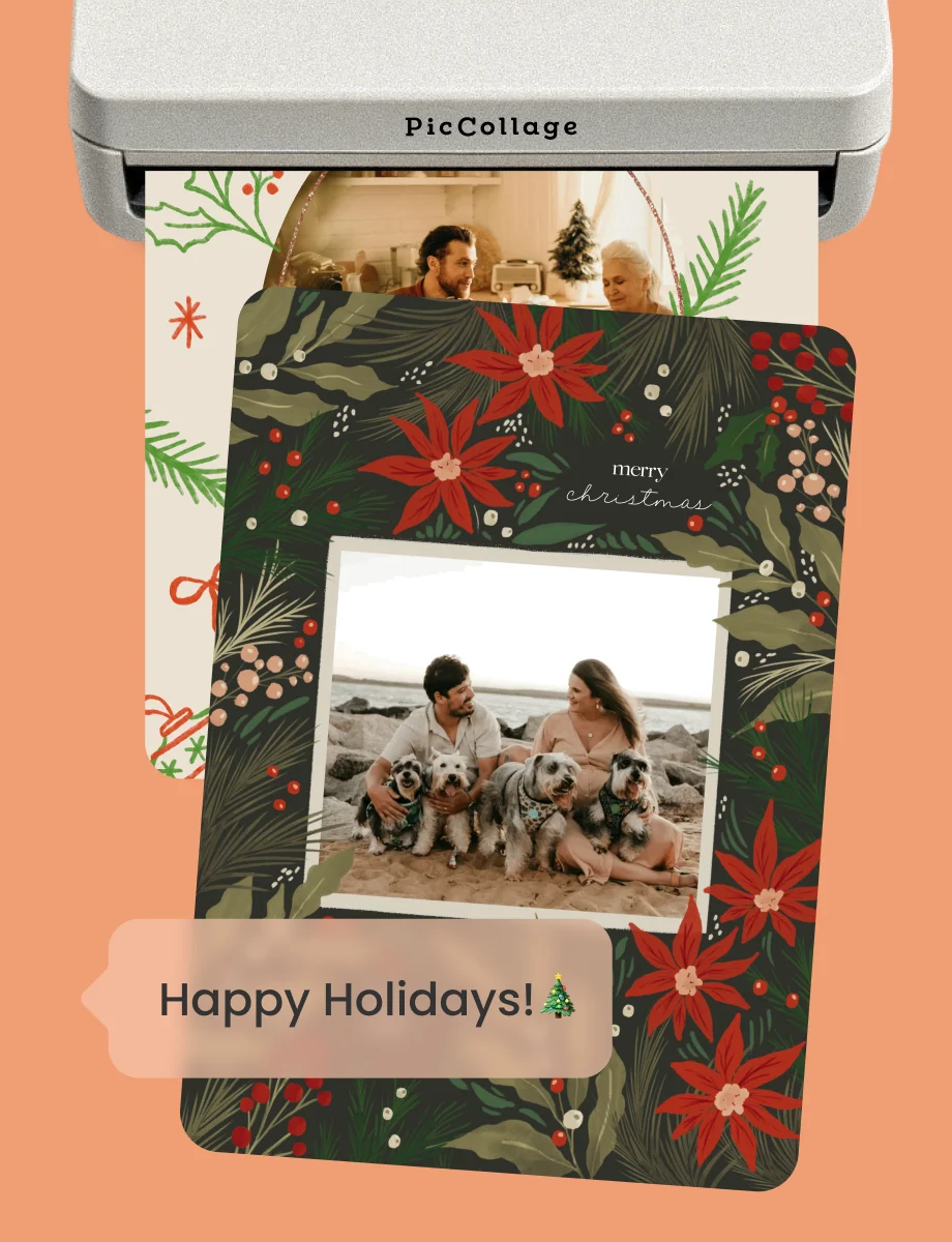 You sure can! PicCollage lets you print your photo holiday cards directly from the app. Animated or video cards can be saved and shared digitally, while image-based designs are ideal for printing at home or through a local print shop.